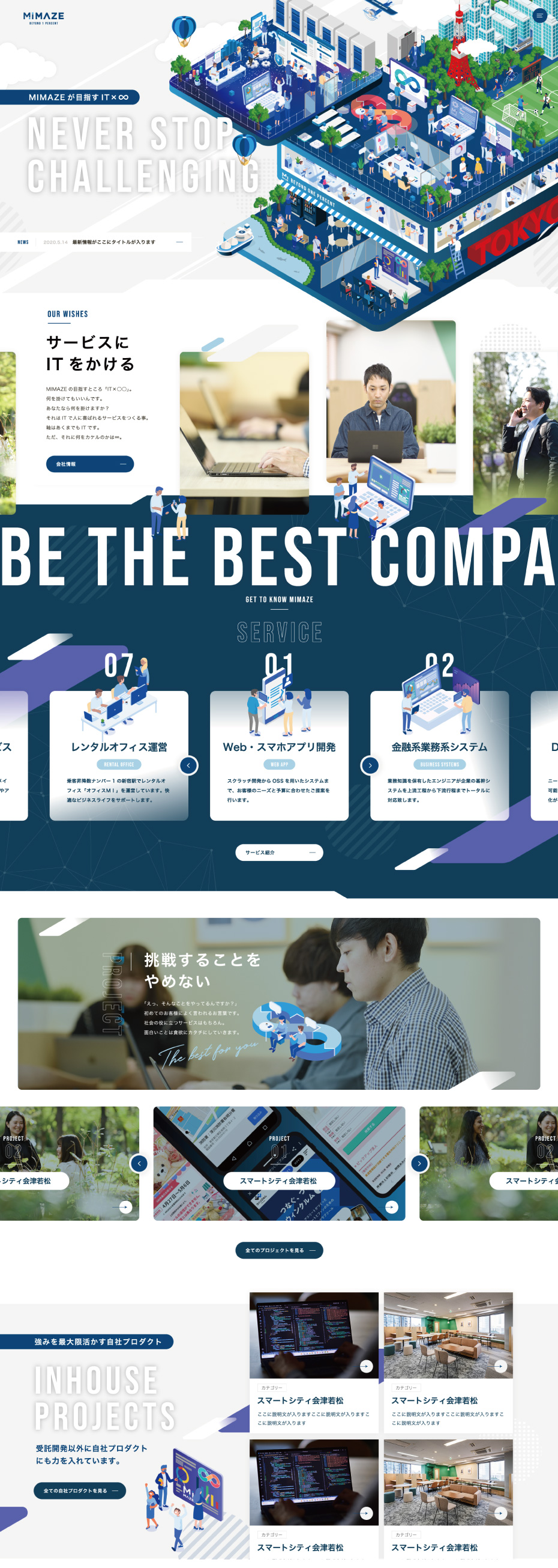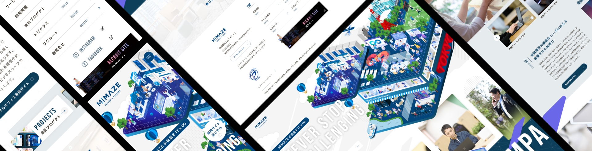 エムアイメイズ様のコーポレートサイトは、イラストを中心とした親しみやすく印象的なデザインで、企業の個性と魅力を直感的に伝えることを目指しました。柔らかいタッチのイラストと色彩で親近感を演出しながら、情報の整理やナビゲーションのしやすさにも配慮。訪問者が楽しみながら企業のビジョンやサービス内容を理解できるよう、デザインと機能の両立を意識したサイトです。